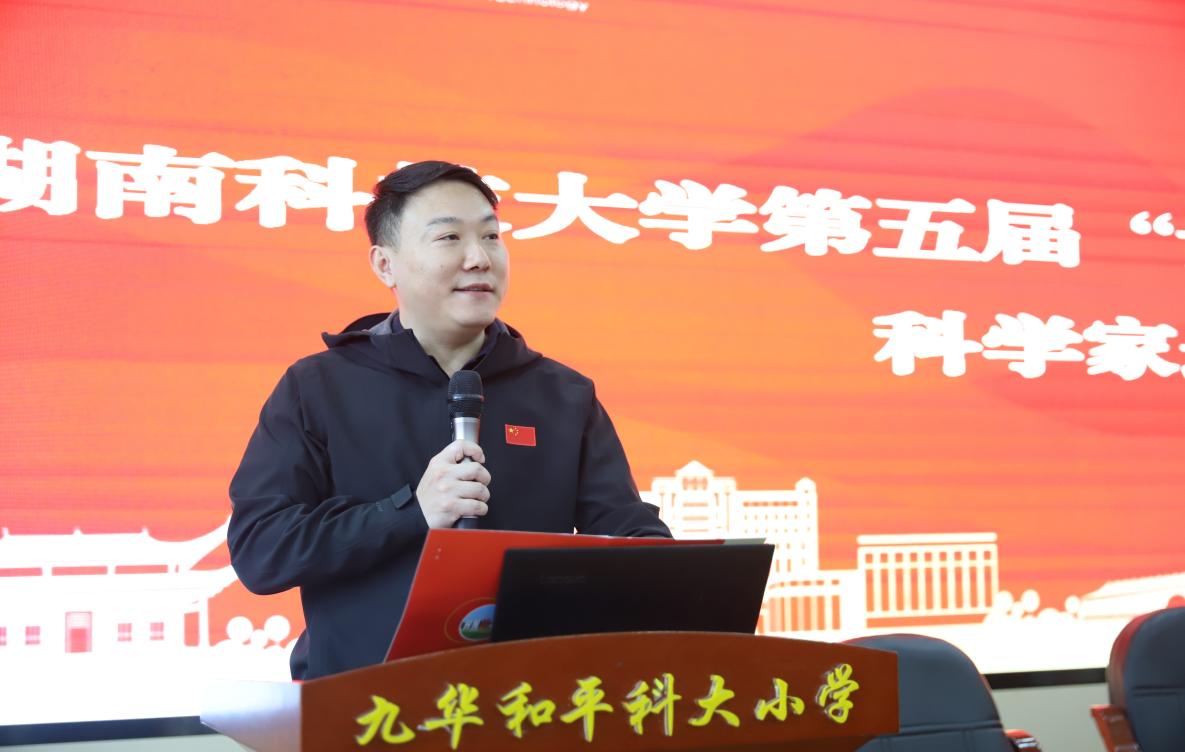 首先,九华和平科大小学专职副书记刘丽老师致欢迎词,对湖南科技大学各位领导和老师的到来表示热烈欢迎。随后,湖南科技大学校团委副书记唐宁潇致辞,他表示,本次“科学家进校园”活动是高校科普资源服务中小学生科学素养提升的重要载体,希望同学们能通过本次活动,触摸地球科学的魅力,在心里种下探索自然、爱护家园的种子,成长为守护地球的小小参与者。