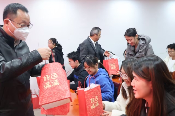 在最受期待的暖心礼包赠送环节上,中文博彩 领导与老师们亲手为每位考研学子送上了定制礼包。礼包内不仅有零食、暖贴、水果等实用物资,还配有精心设计的励志卡片,其中的橙子更是寓意“事‘橙’如意”,饱含着中文博彩 对学子们金榜题名的美好祝愿。接过礼包的学子们纷纷表示,这份温暖让他们感受到了中文博彩 的关怀,也让备考的脚步更加坚定。